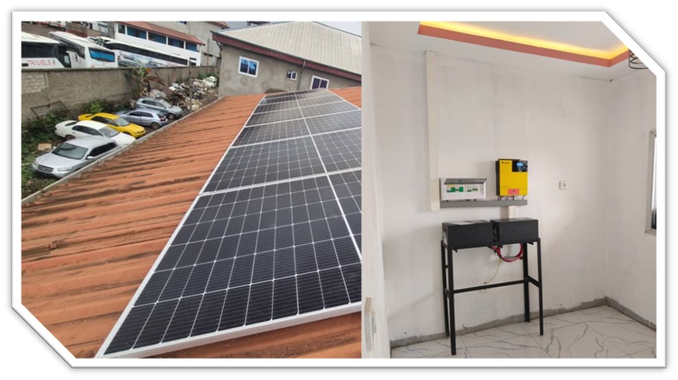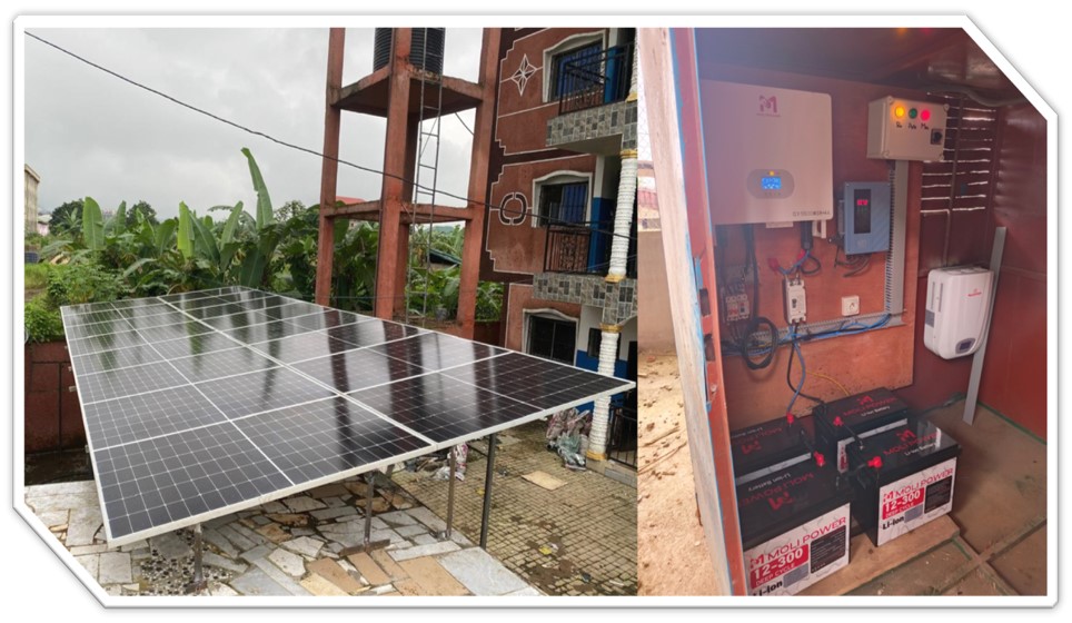 Private Home in Buea powered by PowerHub Ultra featuring 3.3KW Hybrid Inverter + 5KWh LiFePO4 Battery + 3.6KWp PV array-Connected loads include lighting + TV + Fridge/Freezer + Borehole pump, etc.